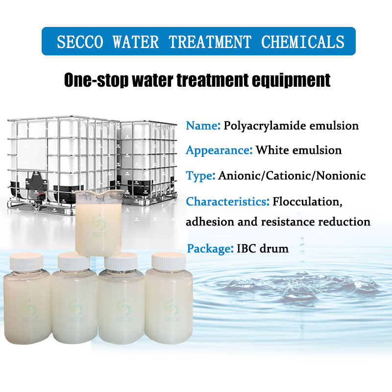 อิมัลชั่น Polyacrylamide ถูกเตรียมโดยการกระจายหรือโพลีเมอร์อิมัลชั่นกลับ ซึ่งเป็นรูปแบบของเหลว polyacrylamide ที่มีอยู่ นอกจากลักษณะของสารแข็ง polyacrylamide flocculants ผ่านโซ่โมเลกุลของกลุ่มขั้วเพื่อดูดซับสารแข็งที่ระงับในอนุภาคน้ำอิมัลชั่นสามารถรูปแบบ flocks ขนาดใหญ่ผ่านสะพานระหว่างอนุภาคหรือไฟฟ้า